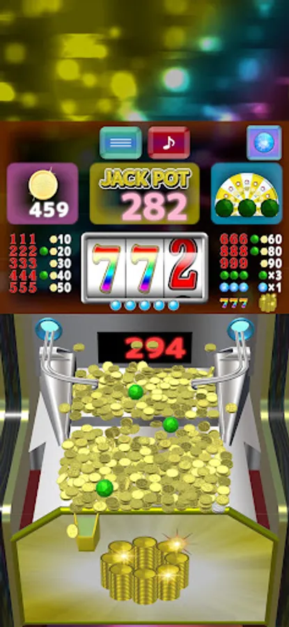 The app version of the coin pusher features a collapsing coin tower, a rarity in coin pushers. If you knock down the coin tower, you can win coins all at once.