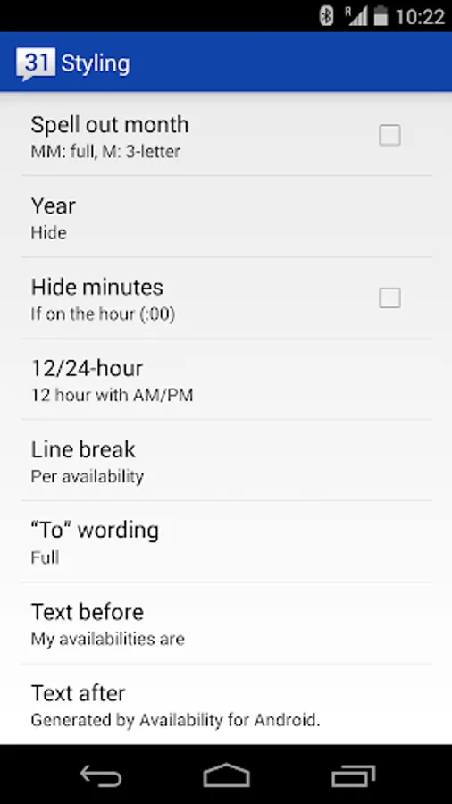 - Format your availabilities any way you want... abbreviations for months and days of the week, line breaks, and more (Pro feature)