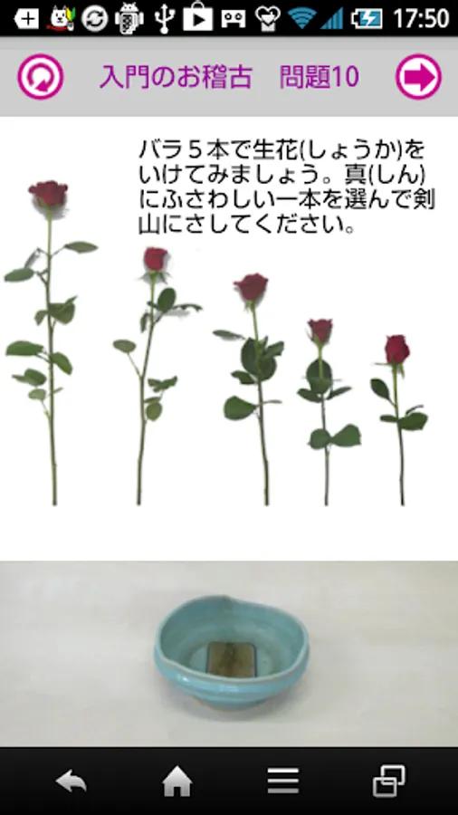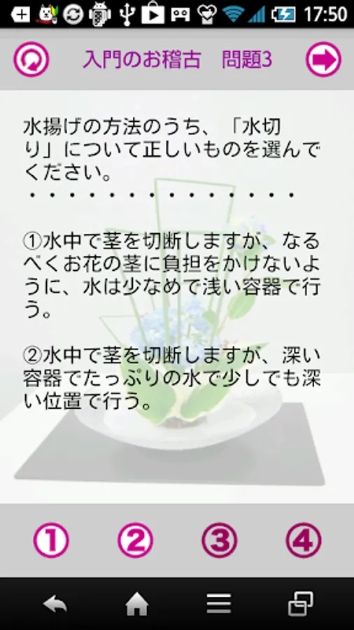 ・You can learn the basic knowledge of ikebana, history, etiquette, how to use tools, how to choose materials, etc. in a quiz format.