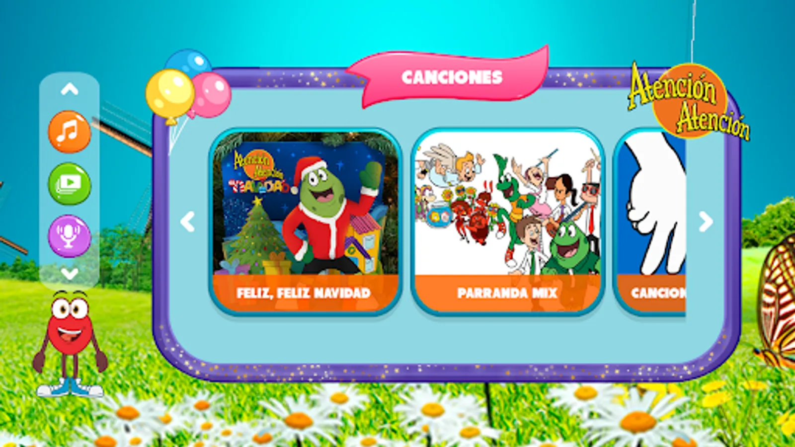 In the Atención Atención App you can listen to songs, watch our videos and listen to podcasts to have a great time.
