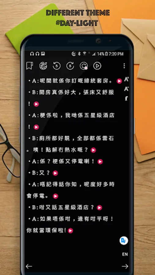 With the added-in dictionary, just tapping on a new word to see the definition - which is defined in simple Cantonese - We think it’s the best way to help you build up your vocabulary.