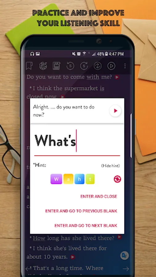 Learn to speak English through hundreds of real-life conversation dialog is the most effective way to learn English. Emphasize on listening, the app helps you to improve your listening skill, pronunciation, know how to ask and answer in daily talking.
