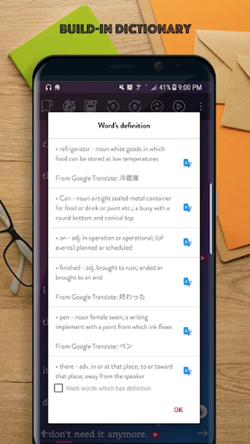 With the added-in dictionary, just tapping on a new word to see the definition - which is defined in simple English - We think it’s the best way to help you build up your vocabulary.