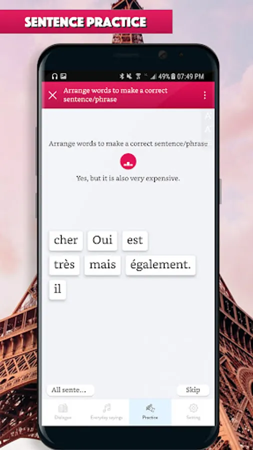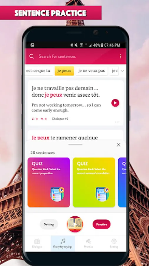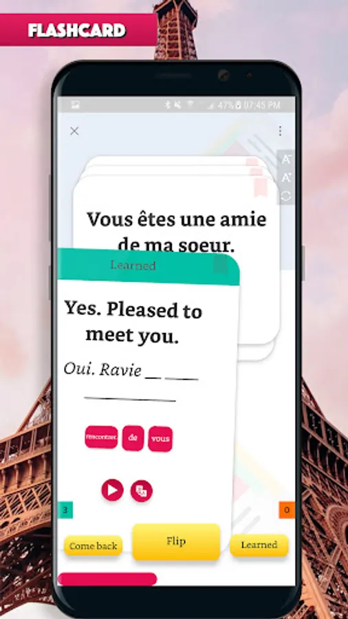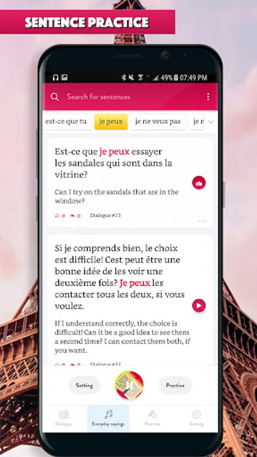 Learn to speak French through hundred of real-life conversation dialog is the most effective way to learn French. Emphasize on listening, the app helps you to improve your listening skill, pronunciation, how to ask and answer in daily talking.