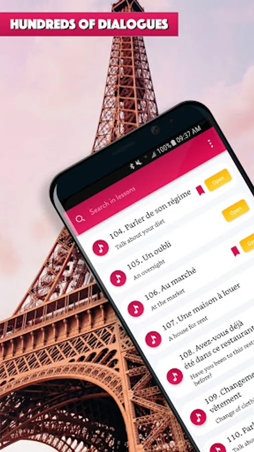 Learn to speak French easily and effectively with hundred of daily conversation dialogs.
