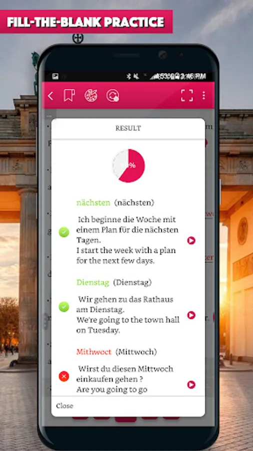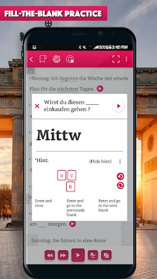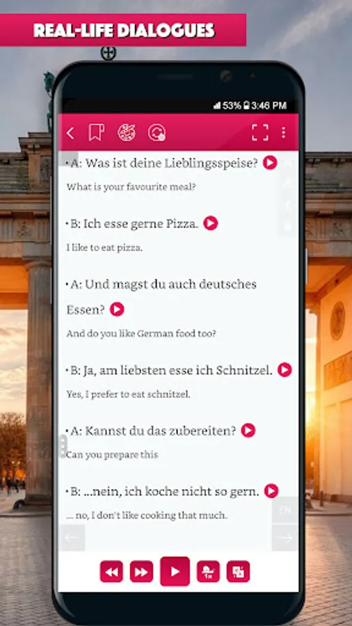 Lesson’s script are prepared in German and English side-by-side (just swipe life to , help you quickly look up for new vocabulary and understand the context.
