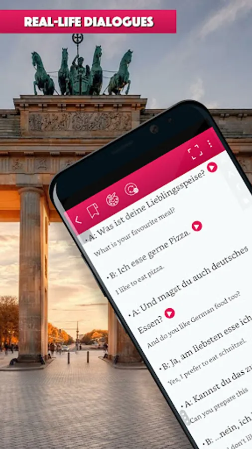 Learn to speak German easily and effectively with hundred of daily conversation dialogs.