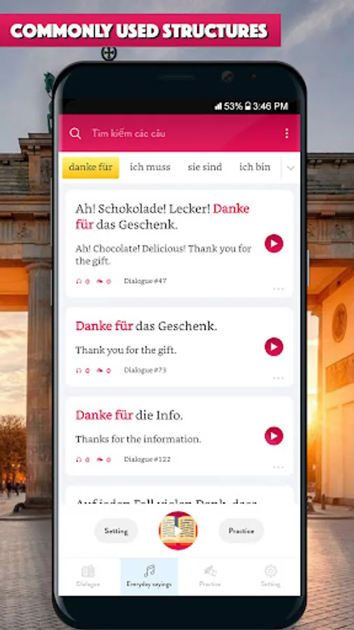 Learn to speak German through hundred of real-life conversation dialog is the most effective way to learn German. Emphasize on listening, the app help you to improve your listening skill, pronunciation, how ask and answer in daily talking.