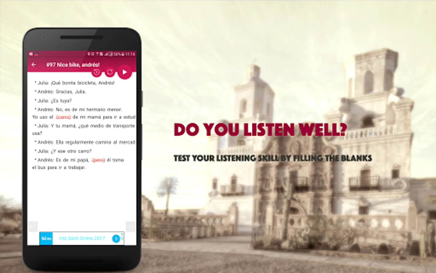 Learn to speak Spanish through hundred of real-life conversation dialog is the most effective way to learn Spanish. Emphasize on listening, the app help you to improve your listening skill, pronunciation, how ask and answer in daily talking.