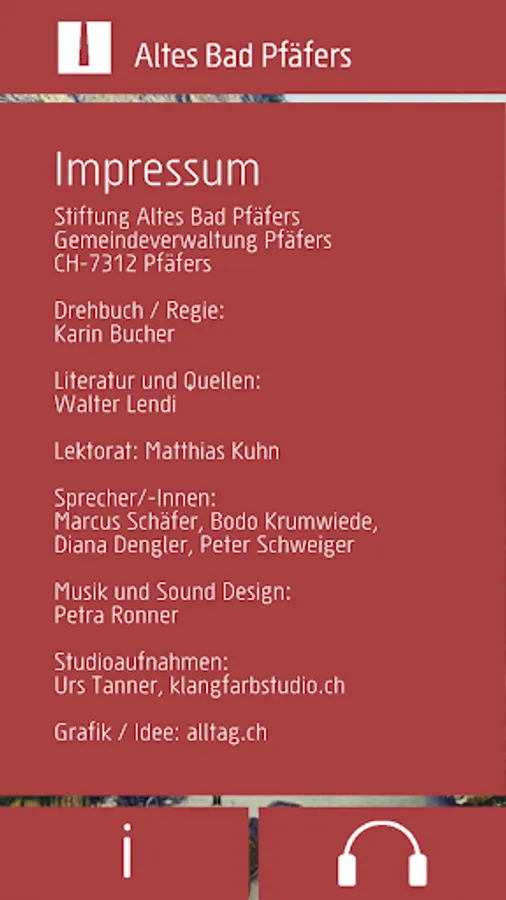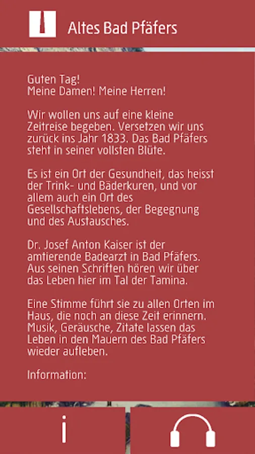 Here you can find interesting information about the Old Bad Ragaz, set to music by professional speakers. If they are on site, the app guides you through all the interesting places of the Old Bad Ragaz - but the information is also available from any other place and mood for the visit.