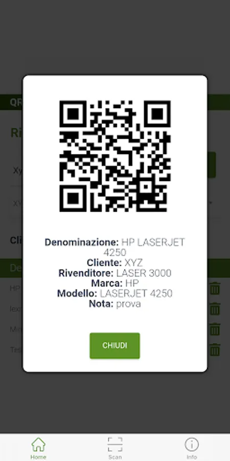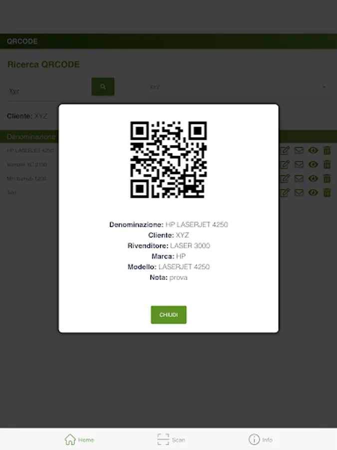 • Ability to create and read QR codes corresponding to machines (printers / copiers) installed at end customers, through labels printed and applied to printers by the dealer.