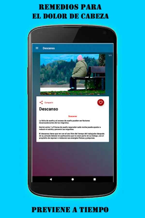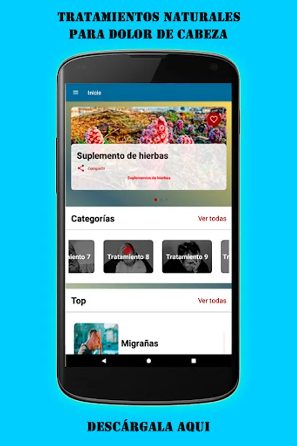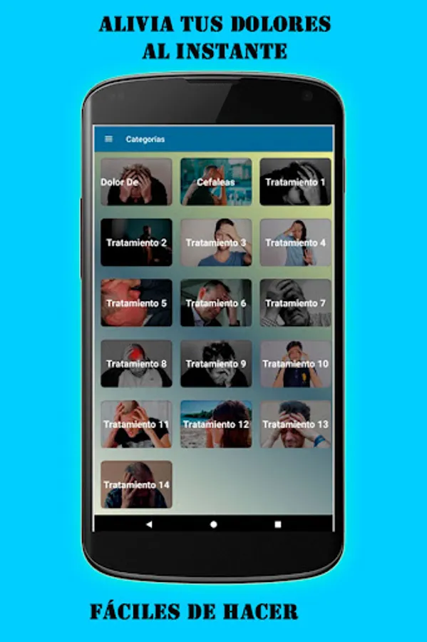 Our application contains a wide variety of home treatments that will be very helpful to relieve headaches instantly, do not wait any longer and I invite you to install it on your mobile to be able to use it at any time.