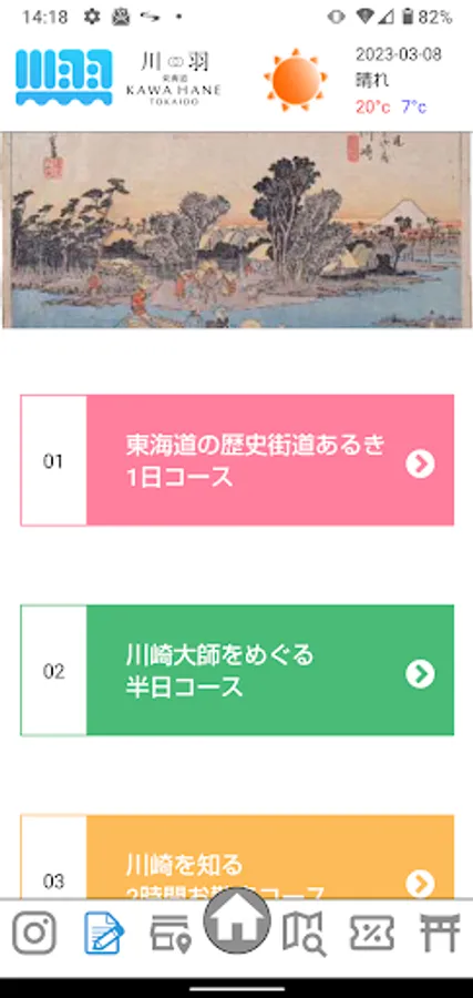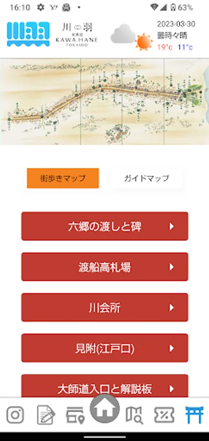 A town-bura app that allows you to walk with you in Kawasaki-shuku, the fifty-three stages of the Tokaido