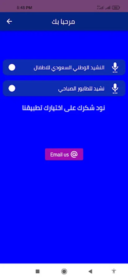 يمكنك التنقل بين أزرار تطبيق النشيد الوطني السعودي للاطفال بسهولة