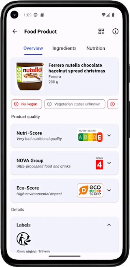 • Scan Food products barcodes to receive information about their composition thanks to the databases Open Food Facts and Open Beauty Facts.