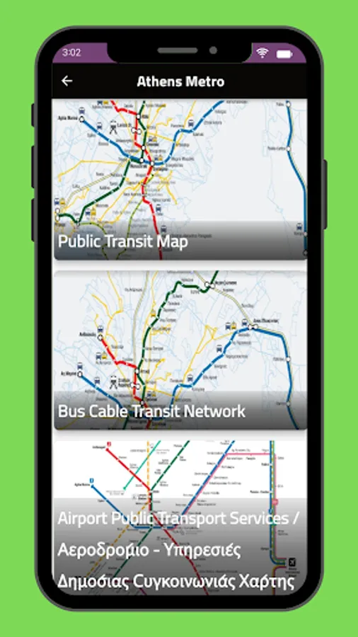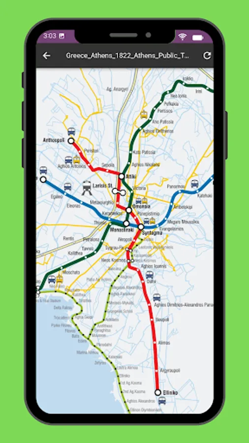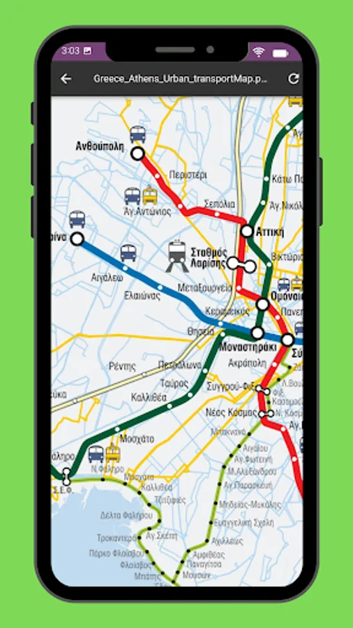 Includes a complete set of maps for the Athens, bus, metro, rail, rail, tram – basically all transit types – from the official sources.