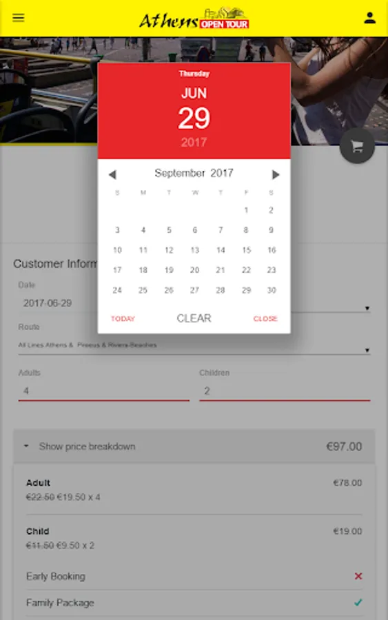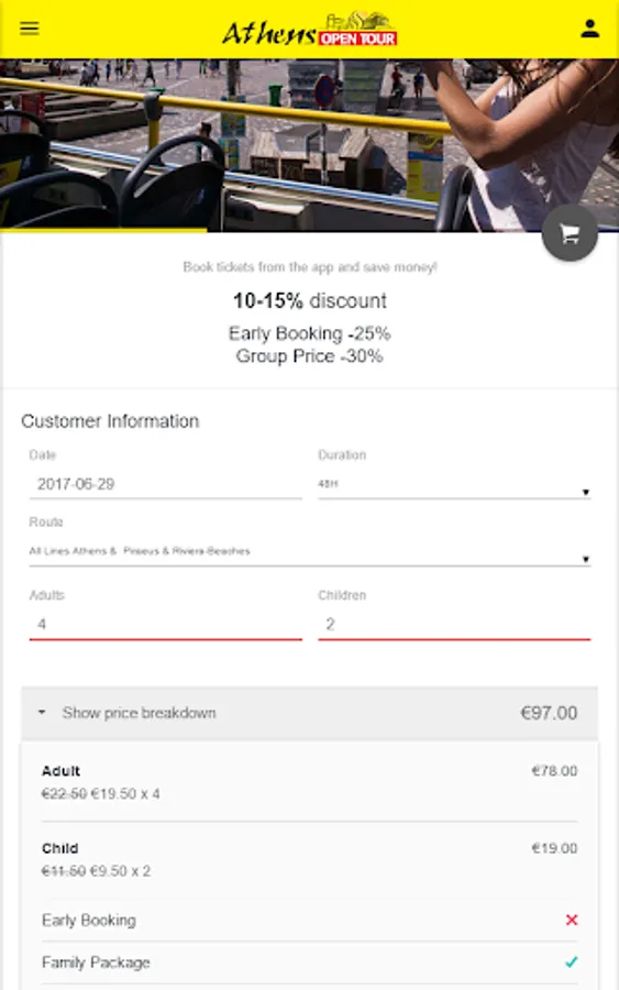 Book your tickets straight from the application through a user friendly environment with fast checkout.