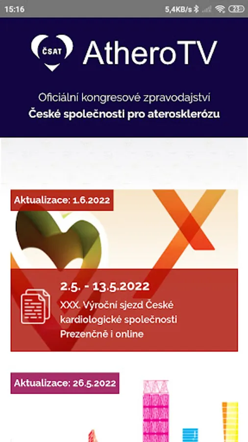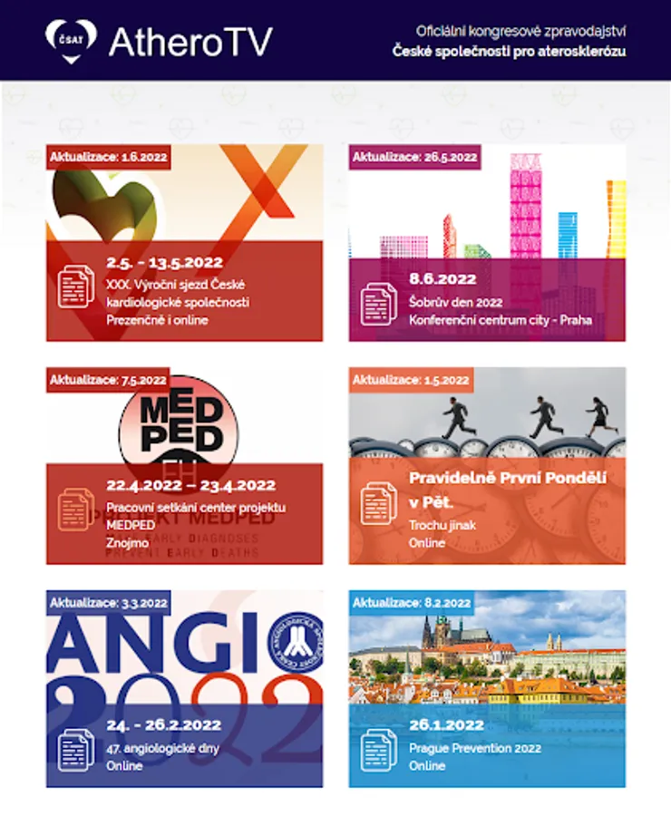 Congress digital news AtheroTV brings you in a new innovative format records of the most important of the congresses and other events of the Czech Society for Atherosclerosis. Interviews and other contributions are gradually being added to the application, reflecting a large part of the program of events.