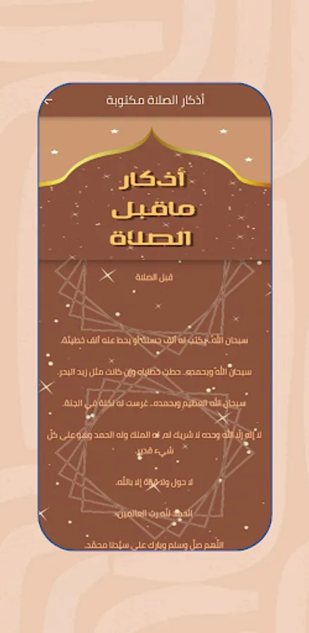 The “Prayer Remembrances” application is your spiritual companion during prayer and will help you achieve a more focused and meditative experience during worship. You will always have a guide for dhikr and tasbeeh to interact with God in a deeper and more spiritual way.