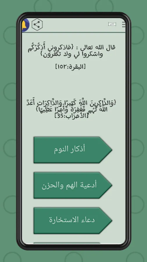 The dhikr application also includes written remembrances and other sections, such as the random verses section, where you press the button and it displays a different Quranic verse every time.