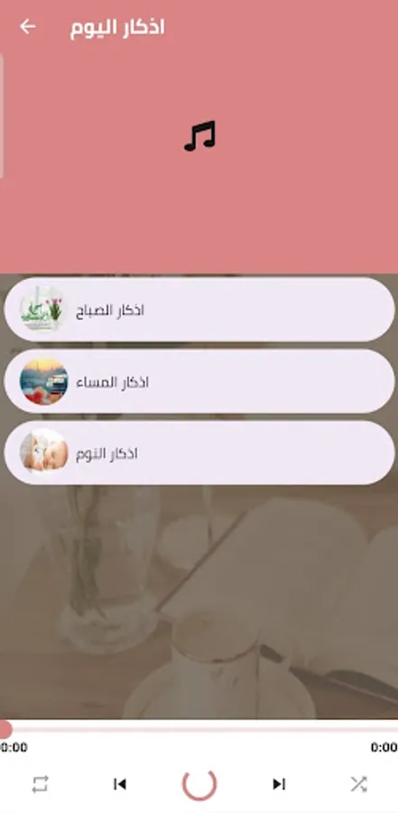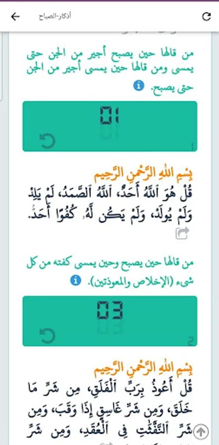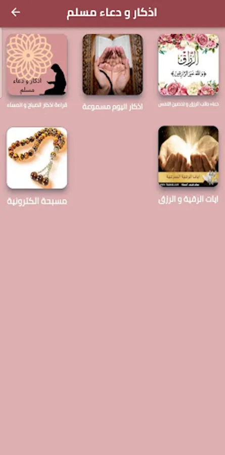 In the Muslim's Remembrances application, you will find several sections of the Remembrances: