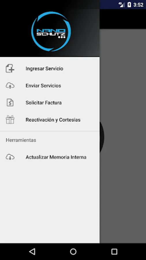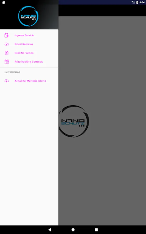 It is an application for the entrance of services of Nano Schutz, as well as request invoices and cancel services.