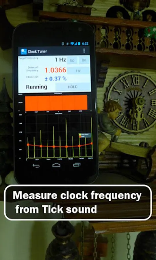 Most pendulum clock: Target frequency: 1 or 2 Hz, Sample duration: 5 or 10 Sec, Sensitivity: medium