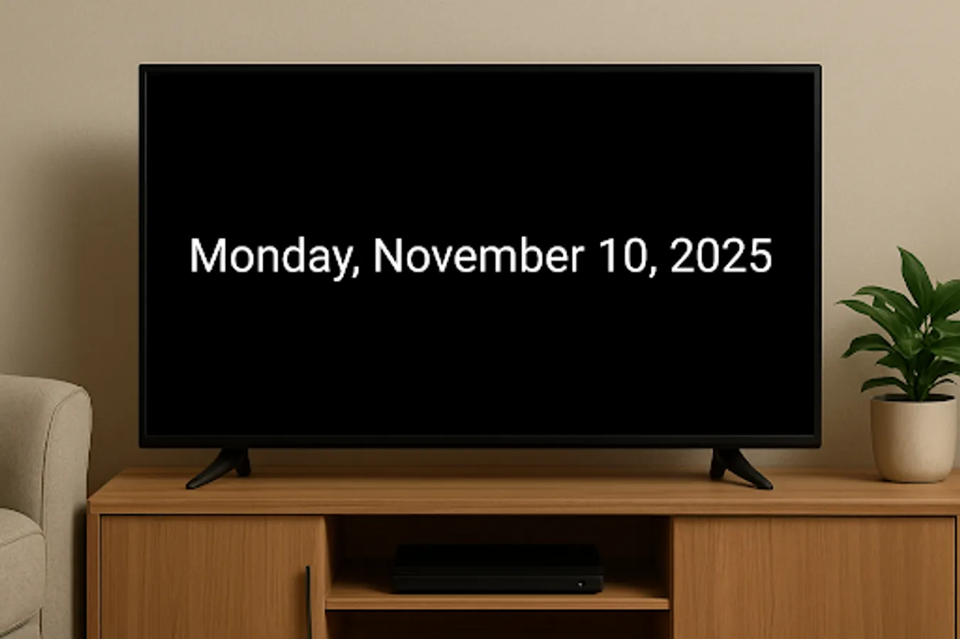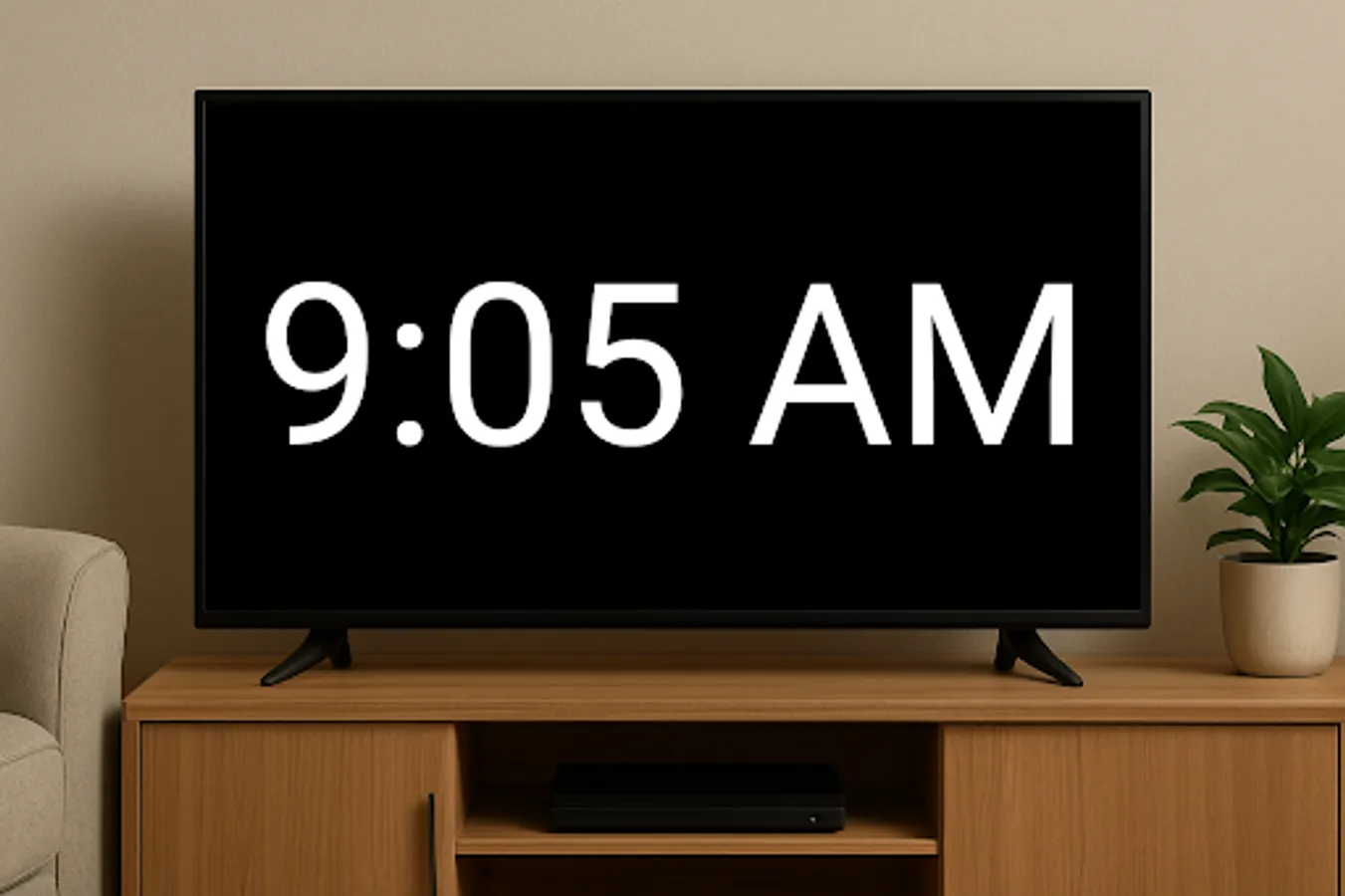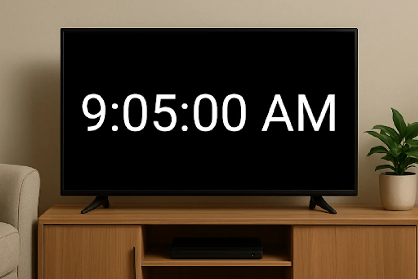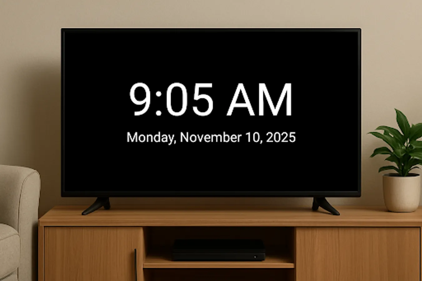 The screen of our television displays the time, date, or both the time and date. Text size is adjustable. Seconds can be displayed. Bold text is available. It is easy to use. The application size is small.