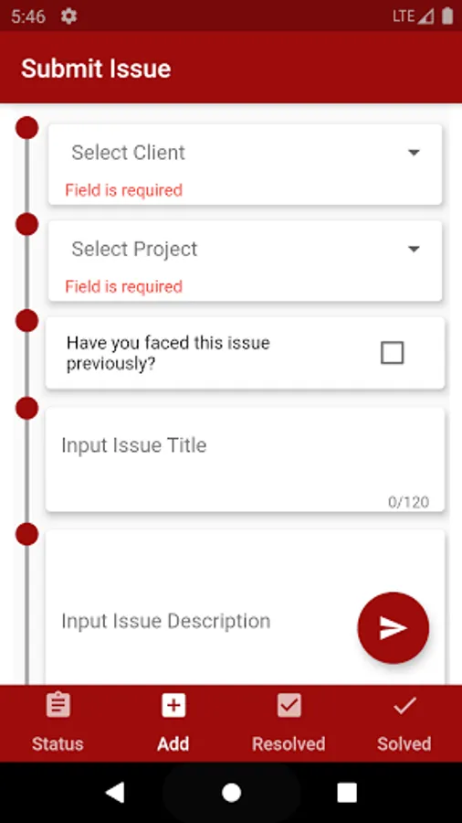 * Most importantly, clients can Submit Issue related to their projects as well as attachments both from camera and gallery