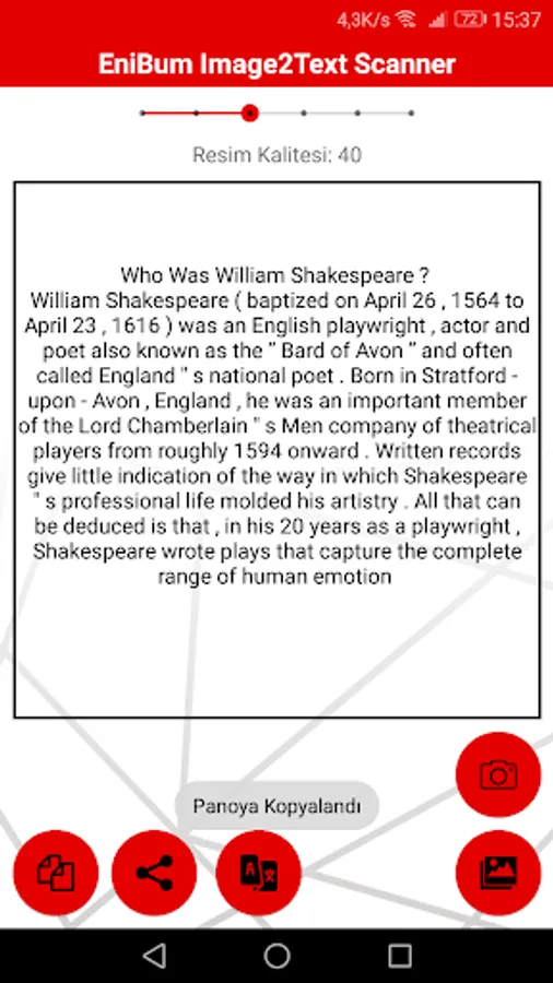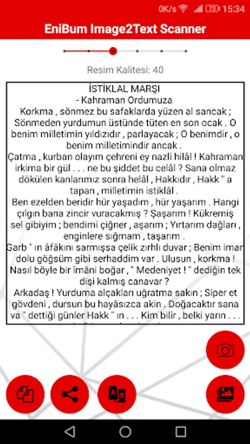 OCR (Optical Character Recognition) is a technology used to convert images to text documents. With this application, you can convert the desired image (magazine, book, etc.) into text document, get rid of long keyboard artifacts, and share your converted text anywhere. Turn your phone into an advanced scanner with the application.