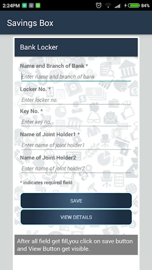 It is used for storing personal details, bank account details, fixed deposit details etc. User can easily save details and see those details anywhere, anytime.