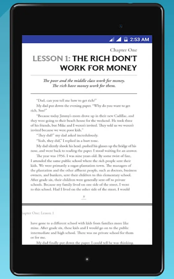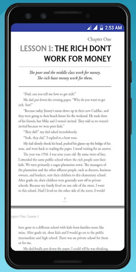 Rich dad said this point of view over and over, which I call lesson number one: The poor and the middle-class work for money. The rich have money work for them. Also in this rich dad poor dad app you will get rich dad poor dad learnings, rich dad poor dad summary, rich dad business.