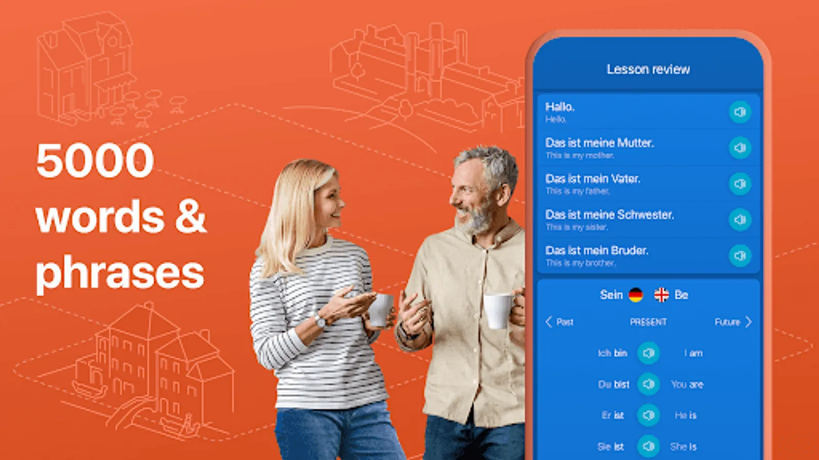 ★ Before you know it, at the end of these German lessons, you will master the most useful 5000 words and phrases and you will be on the fast lane to learning a new language.