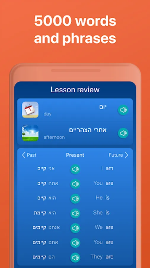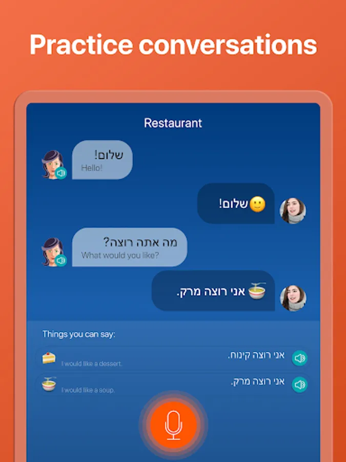 With Mondly you can learn Hebrew sentences and expressions FREE with daily Hebrew language lessons online. This app is the effective way for beginners to study verbs, pronunciation and how to speak like a native with daily practice.