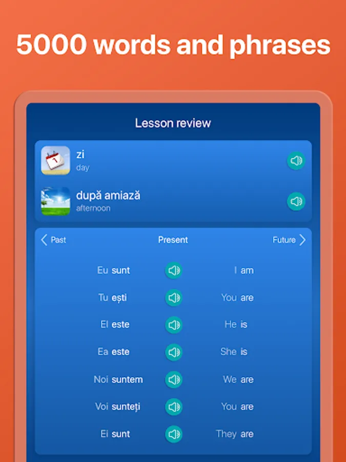Verb conjugations. If you want to learn more during this course, just tap the Romanian verbs and get the full conjugation on the screen, including the translation. It’s faster and better than a dictionary.