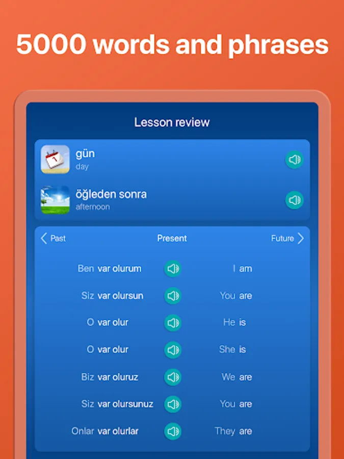 ★ Before you know it, at the end of these Turkish lessons, you will master the most useful 5000 words and phrases and you will be on the fast lane to learning a new language.