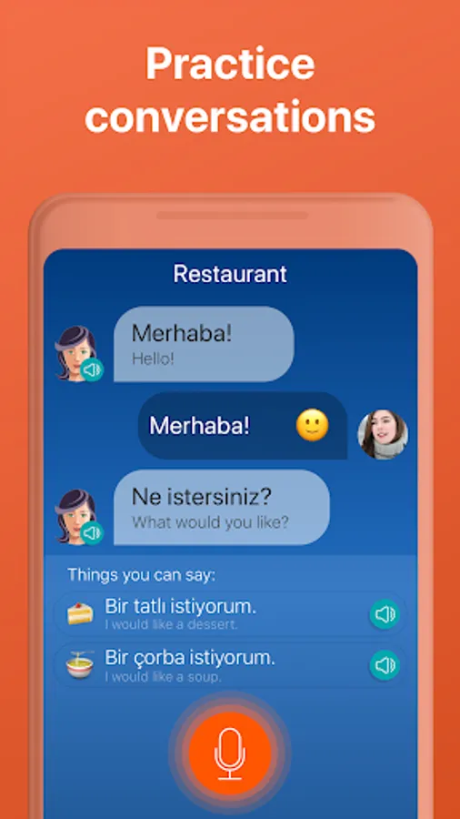 » Mondly knows exactly how to listen to your Turkish words and phrases. You will only get positive feedback if you speak Turkish clearly and correctly. This will improve your pronunciation.