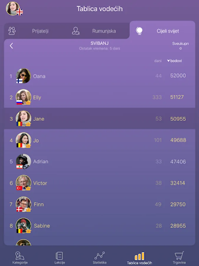 The Leaderboard. See how your friends are doing and compete with people from all over the world to become the best learner in the Mondly community family. Take the Weekly Quiz to become even better.