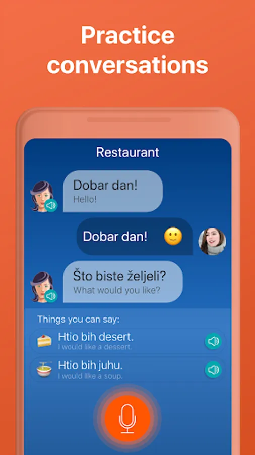 Learn Croatian with free lessons daily. Let Mondly teach you the Croatian language quickly and effectively. In just minutes you’ll start memorizing core Croatian words, form sentences, learn to speak Croatian phrases and take part in conversations. Fun Croatian lessons improve your vocabulary, grammar and pronunciation like no other language learning method. Beginner or advanced learner, traveler or business professional with a tight schedule? The app works great and dynamically adjusts to your needs.