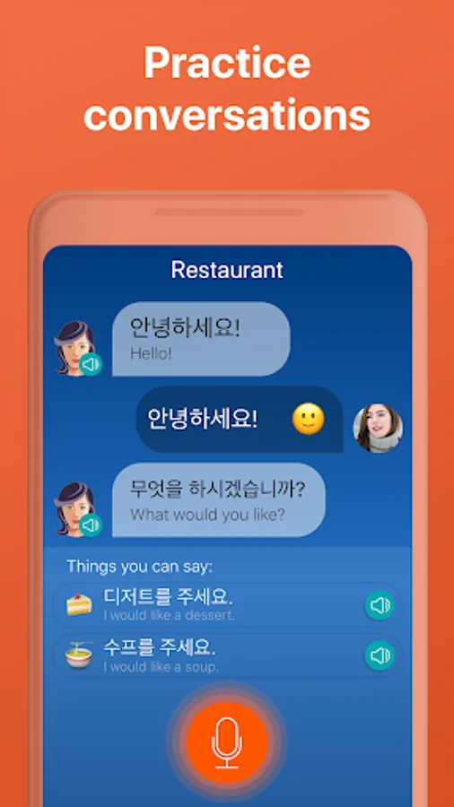 » Mondly by Pearson knows exactly how to listen to your Korean words and phrases. You will only get a positive feedback if you speak Korean clearly and correctly. This will improve your pronunciation.