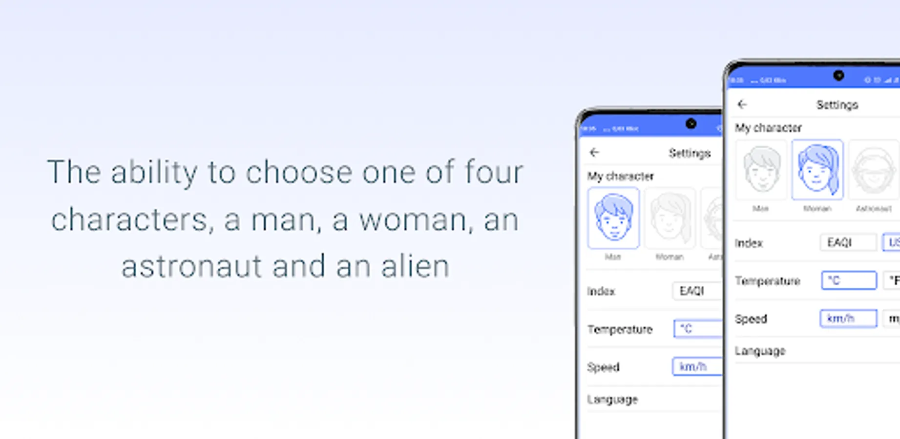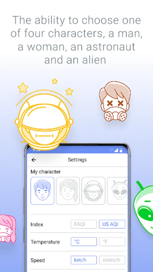• The ability to choose one of four characters – a man, a woman, an astronaut, and an alien.