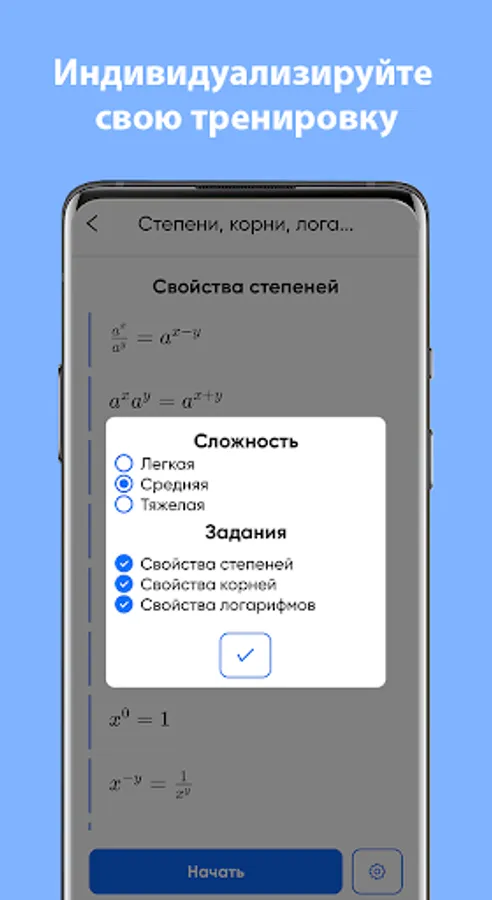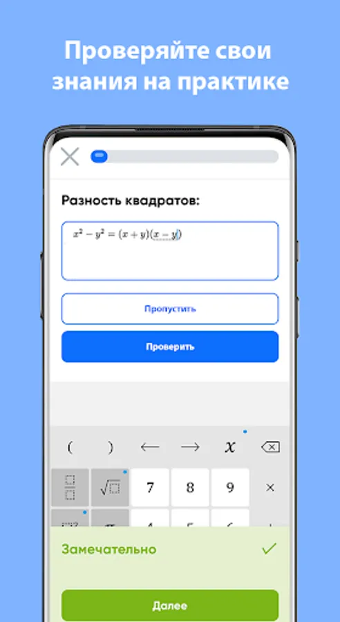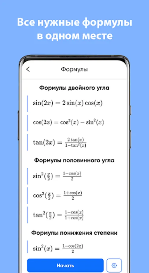 Need to quickly learn lots of math formulas? Then this app is right for you! A convenient and effective system of regular exercises allows you to easily prepare for an exam and improve your knowledge of the subject. The application presents such mathematical topics as: trigonometry, polynomials, logarithms, roots, degrees and progressions. Different types of exercises and difficulty levels allow you to individualize your training. Learn with us!