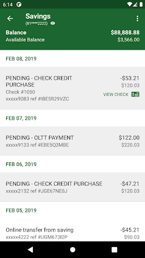 • View recent transactions, including check images
