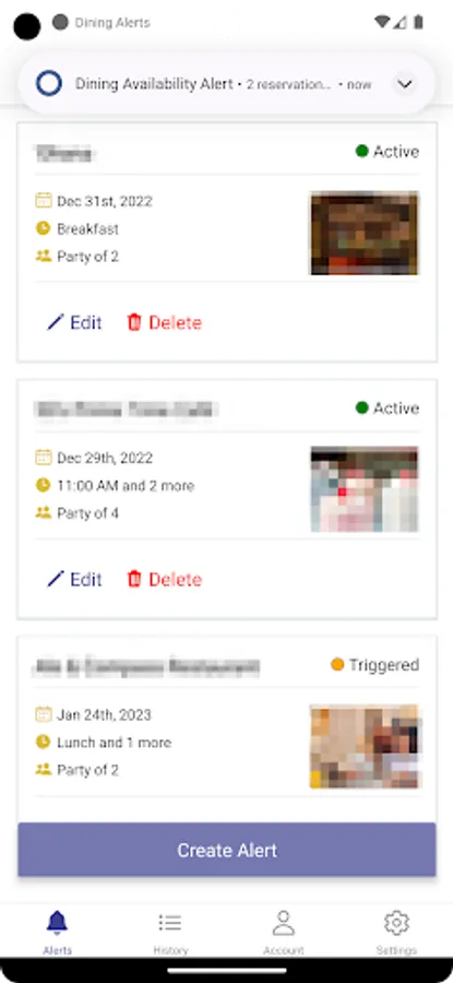* Fast and reliable reservation stake out / checking ensures that you'll get notified faster than any other dining alerts service.