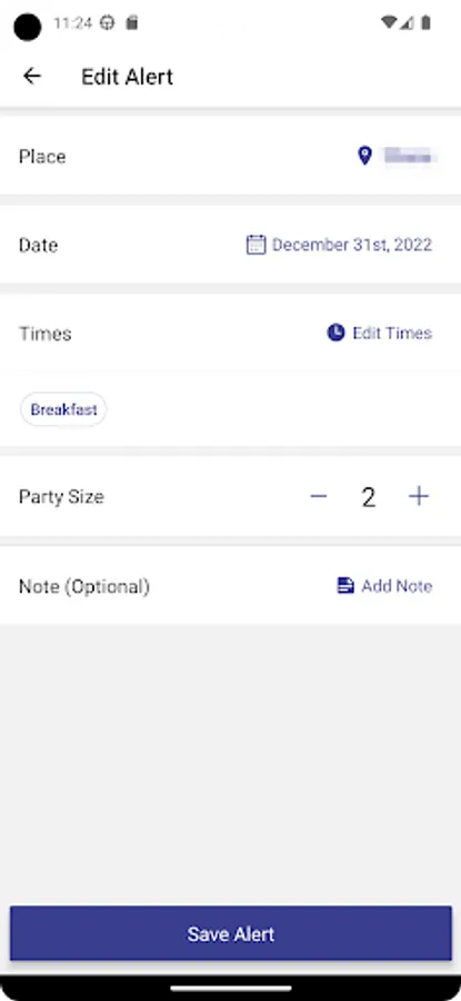 * Flexible options for date, time, and party size, plus the ability to attach notes.