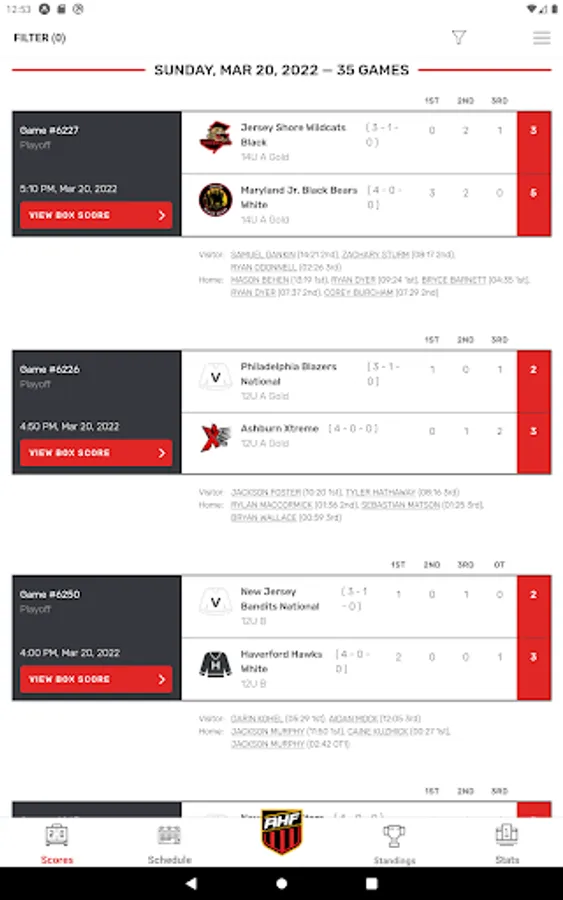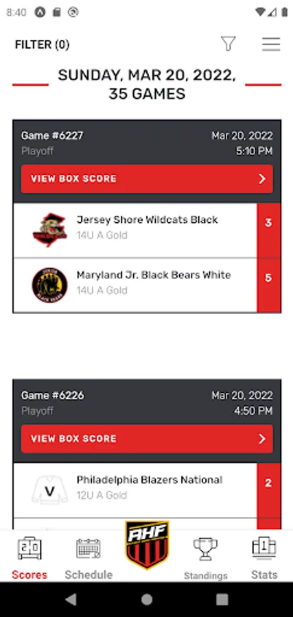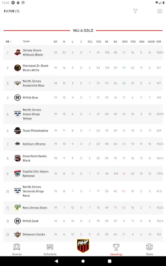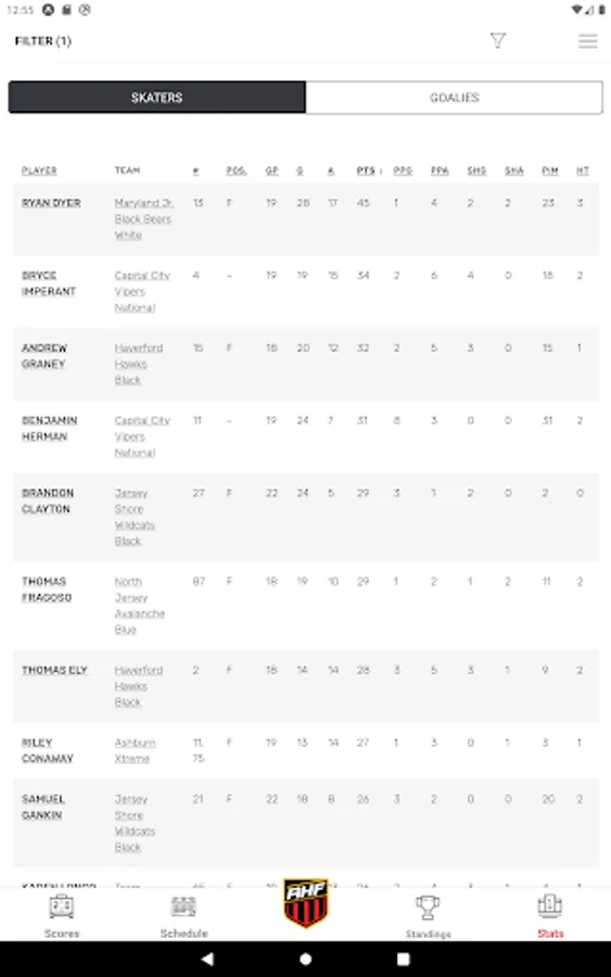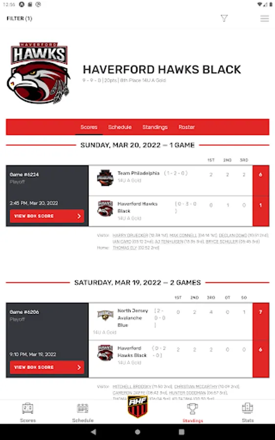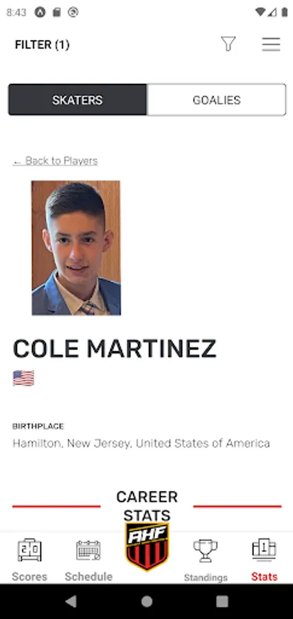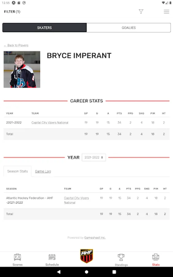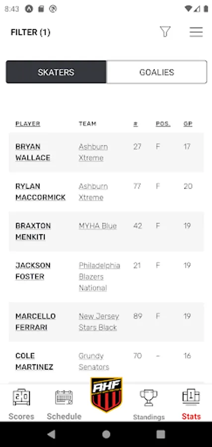 The Official Atlantic Hockey Federation mobile app powered by GameSheet provides real-time access to player stats, standings, schedules, and game results.