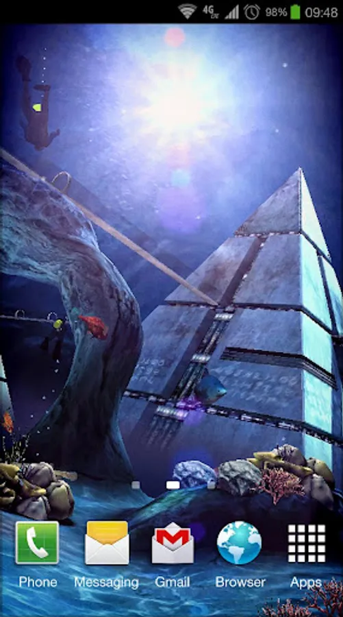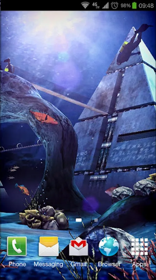 The most convincing underwater 3D live wallpaper on Google Play for your phone or tablet! Take a tour to legendary Atlantis with this photo realistic wallpaper! Fully 3d colorful and living environment, many species of fish, vegetation, mystery of ancient architecture and realistically animated divers, what going to discover Atlantis, make this live wallpaper extremely detailed and visually amazing.