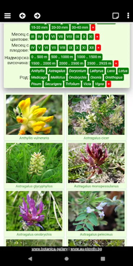 Atlas presents known fodder species from Fabaceae in Bulgaria. Information about 91 species is structured in 2 original assignment keys and 4 visual recognition tables.