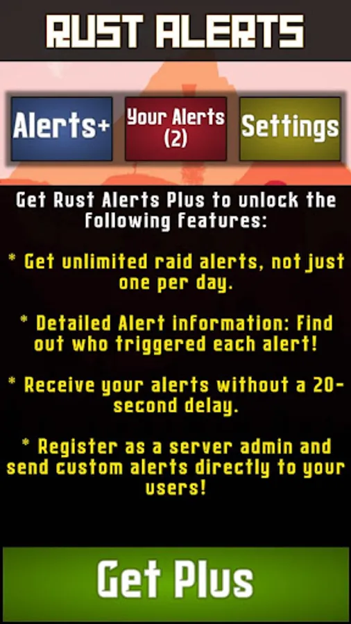 The app is completely free, but upgrading to Rust Alerts Plus offers a few additional benefits: