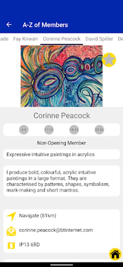 On this exciting app you can find artists by medium, by location (including the artists nearest to you) and by opening date as well as finding galleries and exhibitions nearby. You can also make sure you save those artists you wish to visit in your favourites!